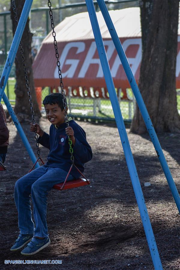 CIUDAD DE MEXICO, noviembre 5, 2018 (Xinhua) -- Un ni?o que participa en la caravana migrante, juega en el Estadio Jesús Martínez "Palillo", en la Ciudad Deportiva Magdalena Mixhuca, en la Ciudad de México, capital de México, el 5 de noviembre de 2018. Más de 2,200 migrantes centroamericanos de la masiva caravana que atraviesa México rumbo a Estados Unidos han llegado a la capital del país desde el domingo, informaron el lunes autoridades locales. A su entrada a la Ciudad de México, los cientos de familias con ni?os o adultos que viajan solos son dirigidos a un albergue que se habilitó en un estadio ubicado en el este de la urbe. (Xinhua/Xin Yuewei)