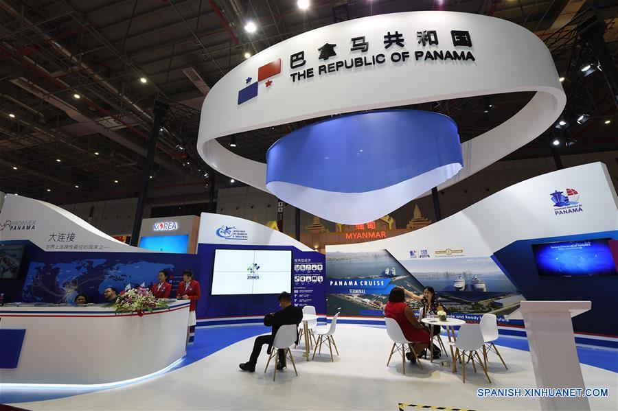 Vista del estand de Panamá en la primera Exposición Internacional de Importaciones de China (CIIE) en Shanghai, en el este China, el 6 de noviembre de 2018. Un total de 82 países y tres organizaciones internacionales presentan sus avances en el desarrollo económico y comercial así como productos competitivos en 71 estands en el Pabellón de País para Comercio e Inversión en la CIIE. (Xinhua/Han Yuqing)