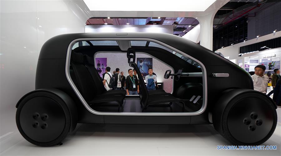 Visitantes observan un nuevo vehículo eléctrico en la primera Exposición Internacional de Importaciones de China (CIIE), en Shanghai, en el este China, el 6 de noviembre de 2018. La primera CIIE se lleva a cabo del 5 al 10 de noviembre en Shanghai. (Xinhua/Wang Jianhua)