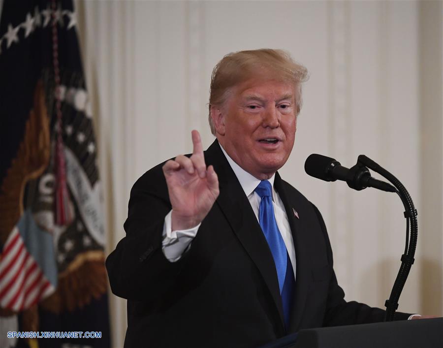 WASHINGTON D.C., noviembre 7, 2018 (Xinhua) -- El presidente estadounidense, Donald Trump, participa en una conferencia de prensa en la Casa Blanca, en Washington D.C., Estados Unidos, el 7 de noviembre de 2018. El presidente de Estados Unidos, Donald Trump, dijo el miércoles que almorzará con el presidente ruso Vladimir Putin, entre otros líderes, durante su viaje a París, pero que no se espera una reunión. (Xinhua/Hu Yousong)