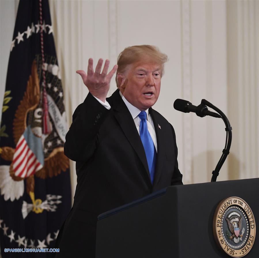 WASHINGTON D.C., noviembre 7, 2018 (Xinhua) -- El presidente estadounidense, Donald Trump, participa en una conferencia de prensa en la Casa Blanca, en Washington D.C., Estados Unidos, el 7 de noviembre de 2018. El presidente de Estados Unidos, Donald Trump, dijo el miércoles que almorzará con el presidente ruso Vladimir Putin, entre otros líderes, durante su viaje a París, pero que no se espera una reunión. (Xinhua/Hu Yousong)
