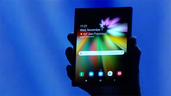 Seúl, Corea del Sur, 08/11/2018 (El Pueblo en Línea) - Justice Denison, vicepresidente senior de Marketing de Samsung fue el encargado de presentar la pantalla plegable de su compa?ía. Cuenta con dos pantallas, una grande y que se pliega en su interior, y una externa con tama?o de smartphone que permanece rígida. El dispositivo presentado hoy “es real”, según Denison. Es el producto final que será puesto a la venta en 2019. Desde Samsung han elegido cubrirlo con un marco de un grosor obvio para limitar lo que sus competidores puedan averiguar de él, según La Vanguardia.