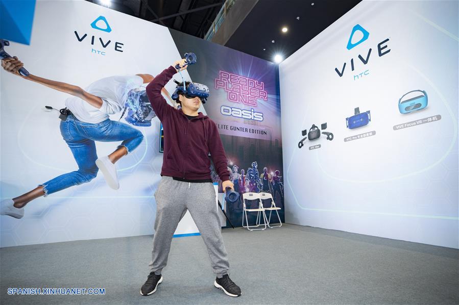 WUZHEN, noviembre 7, 2018 (Xinhua) -- Un visitante experimenta con un equipo de realidad virtual durante la V Conferencia Mundial de Internet, en Wuzhen, en la provincia de Zhejiang, en el este de China, el 7 de noviembre de 2018. El evento de tres días de duración inció el miércoles. (Xinhua/Cai Yang)