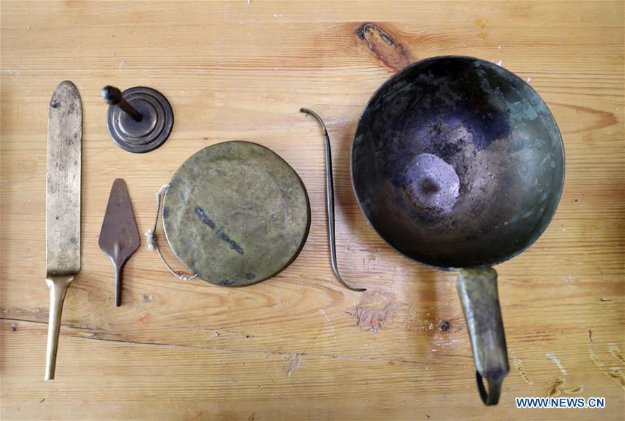 Esta foto del 6 de noviembre de 2018 muestra las herramientas para esculpir el azúcar utilizadas por la artista popular Li Fengyan en Shenyang, provincia de Liaoning, al noreste de China. Las esculturas de azúcar de la familia Li fueron catalogadas como patrimonio cultural inmaterial por la ciudad de Shenyang. Como heredera de la quinta generación del oficio de su familia, Li Fengyan se está esforzando para transmitir el conjunto de conocimientos de las esculturas de azúcar a sus aprendices. (Xinhua / Yang Qing)