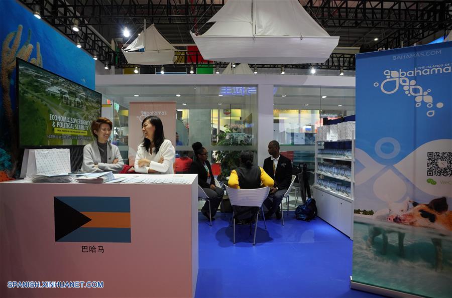 SHANGHAI, noviembre 8, 2018 (Xinhua) -- El estand de Bahamas es captado en la primera Exposición Internacional de Importaciones de China (CIIE) en Shanghai, en el este de China, el 8 de noviembre de 2018. Un total de 82 países y tres organizaciones internacionales mostraron sus logros en el desarrollo económico y comercial así como sus productos competitivos en 71 estands en el Pabellón de País para el Comercio y la Inversión en la CIIE. (Xinhua/Cheng Li)