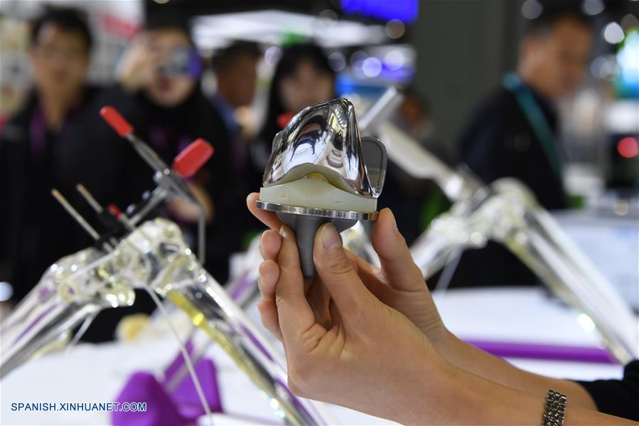 SHANGHAI, noviembre 8, 2018 (Xinhua) -- El sistema de reemplazo de rodilla Attune es exhibido en el área de Productos de Equipo Médico y Cuidado de la Salud de la primera Exposición Internacional de Importaciones de China (CIIE) en Shanghai, en el este de China, el 8 de noviembre de 2018. (Xinhua/Sadat)
