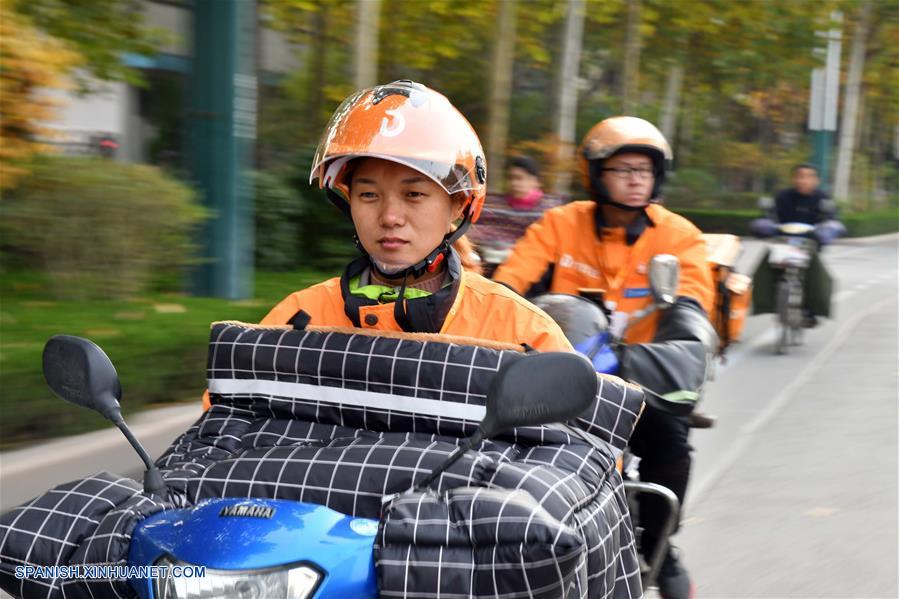 SHANDONG, noviembre 9, 2018 (Xinhua) -- Imagen del 8 de noviembre de 2018 del repartidor con discapacidad auditiva, Gao Li, entregando comida en el distrito Kuiwen de Weifang, en la provincia de Shandong, en el este de China. Un proveedor de servicios de entrega instantánea subcontratado en Weifang, ha logrado contratar a más de 30 pasajeros con discapacidad auditiva que después de capacitaciones vocacionales, han probado ser igualmente competentes que sus compa?eros sin la discapacidad. El equipo de entrega con discapacidad auditiva de la compa?ía, consiste de motociclistas de distintos orígenes: graduados de universidades, madres solteras, exprofesores de conducción y otros. El rango de sus servicios cubre casi todo, desde platillos de restaurantes a medicina y flores. Para los conductores con discapacidad auditiva, la comunicación es su principal barrera, ya que la mayoría de los clientes sabe poco acerca del lenguaje de se?as. Los motociclistas deben usar etiquetas explicando su discapacidad auditiva a los clientes. A pesar de las complicaciones en el trabajo los motociclistas con discapacidad auditiva obtienen una sensación de logro y reconocimiento al recibir el apoyo y respeto de más clientes. (Xinhua/Guo Xulei)