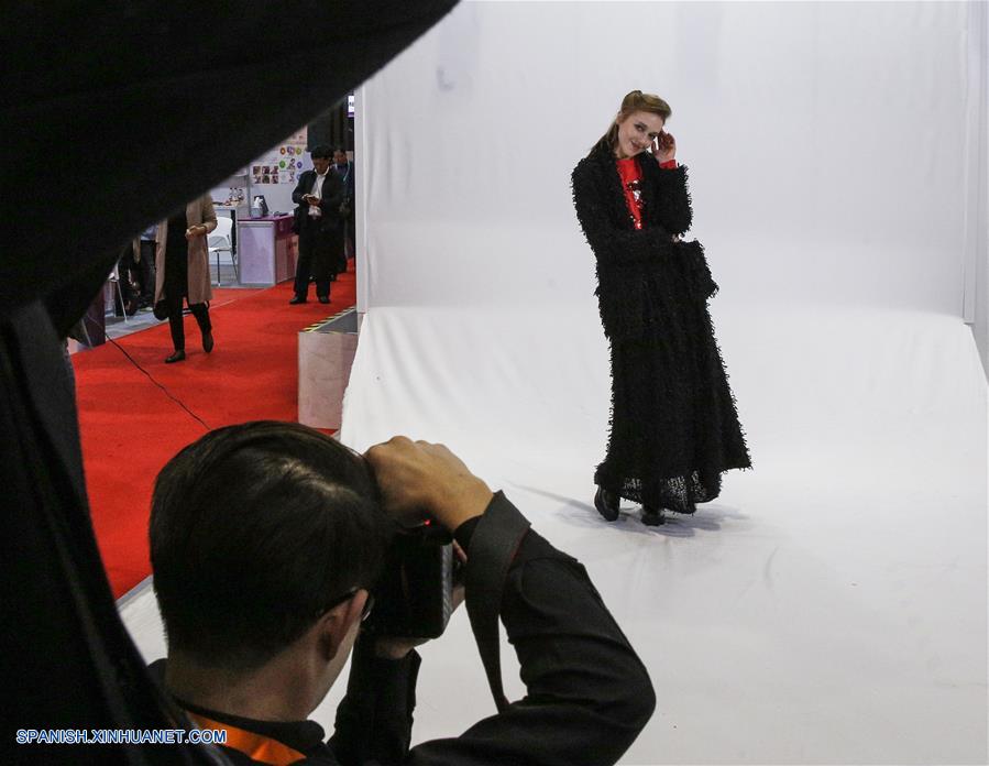 SHANGHAI, noviembre 9, 2018 (Xinhua) -- Una modelo presenta una creación en el área de Ropa, Accesorios y Bienes de Consumo de la primera Exposición Internacional de Importaciones de China (CIIE), en Shanghai, en el este de China, el 9 de noviembre de 2018. (Xinhua/Zhang Yuwei)