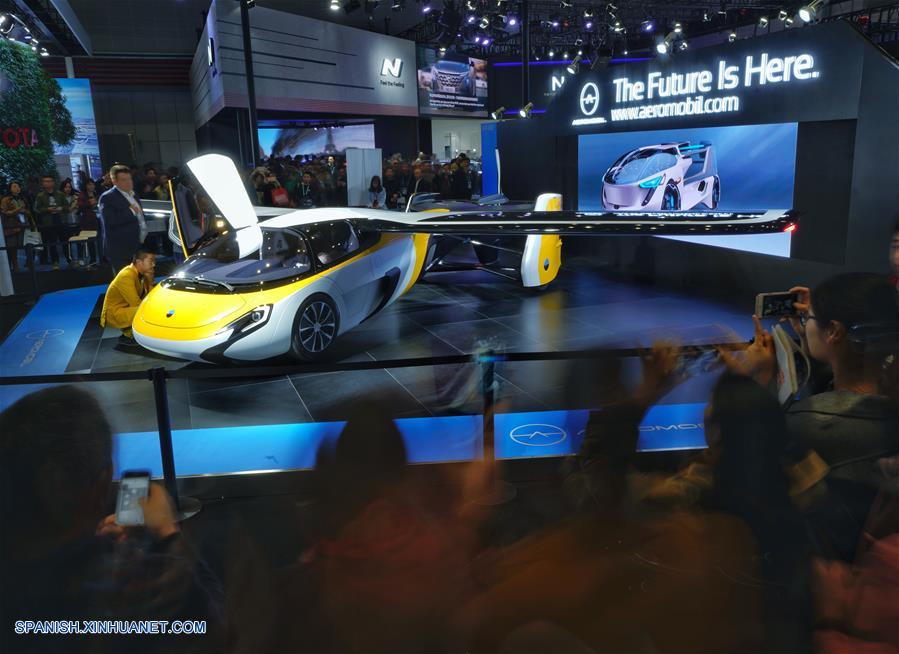 SHANGHAI, noviembre 9, 2018 (Xinhua) -- Visitantes observan un "automóvil volador" desarrollado por AeroMobil en la primera Exposición Internacional de Importaciones de China (CIIE), en Shanghai, en el este de China, el 9 de noviembre de 2018. La CIIE es abierta a los grupos de visitantes del 9 al 10 de noviembre. (Xinhua/Xing Guangli)