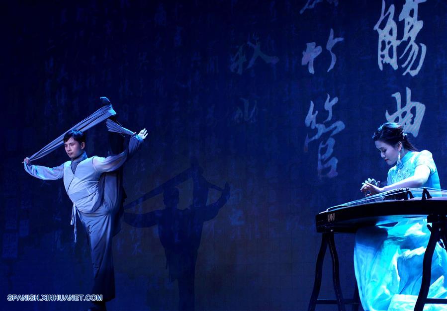 SHANGHAI, noviembre 11, 2018 (Xinhua) -- El bailarín Huang Doudou (i), realiza una presentación durante la ceremonia de apertura de la Exhibición de Arte Conceptual de Tinta China, en el Museo de Arte de China, en Shanghai, en el este de China, el 11 de noviembre de 2018. La exhibición inició el domingo, como parte del programa del 20 Festival Internacional de Artes de Shanghai. (Xinhua/Ren Long)