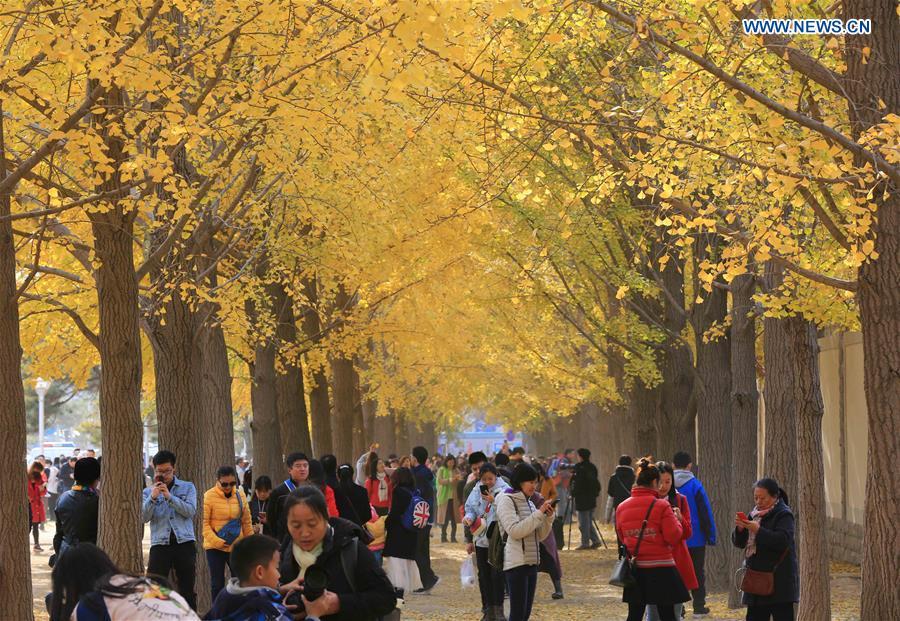árboles Ginkgo biloba embellecen la avenida contigua a Diaoyutai, una de las residencias para invitados del gobierno chino, Beijing, 10 de noviembre del 2018. (Foto: Xinhua/ Wang Zhongsheng)