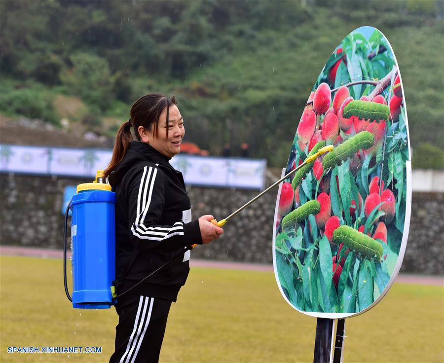 HUBEI, noviembre 12, 2018 (Xinhua) -- Imagen del 11 de noviembre de 2018 de una granjera compitiendo durante una reunión deportiva para celebrar la cosecha en el condado Zigui de la ciudad de Yichang, en la provincia de Hubei, en el centro de China. (Xinhua/Wang Huifu)