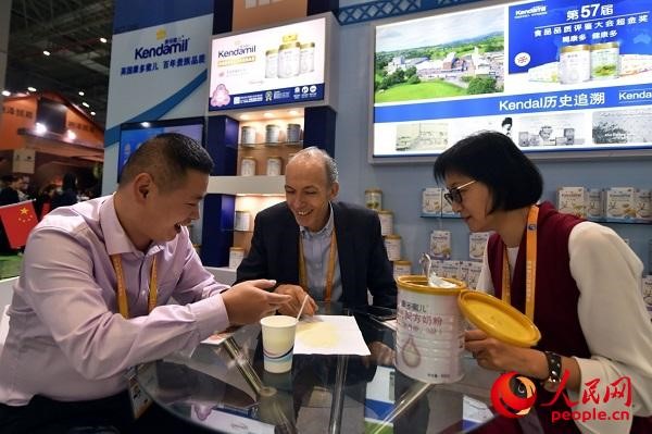 El 9 de noviembre se abrió la CIIE para organizaciones sociales. Para conocer la opinión de los consumidores chinos sobre su leche en polvo, McMahon ofreció muestras de leche a los visitantes y escuchó sus sugerencias.
