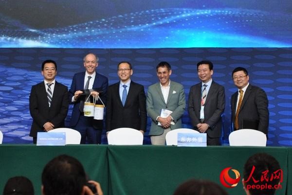 McMahon firmó el acuerdo con dos latas de leche en sus manos. La escena fue aplaudida por el público. Foto de Zeng Shurou, Pueblo en Línea