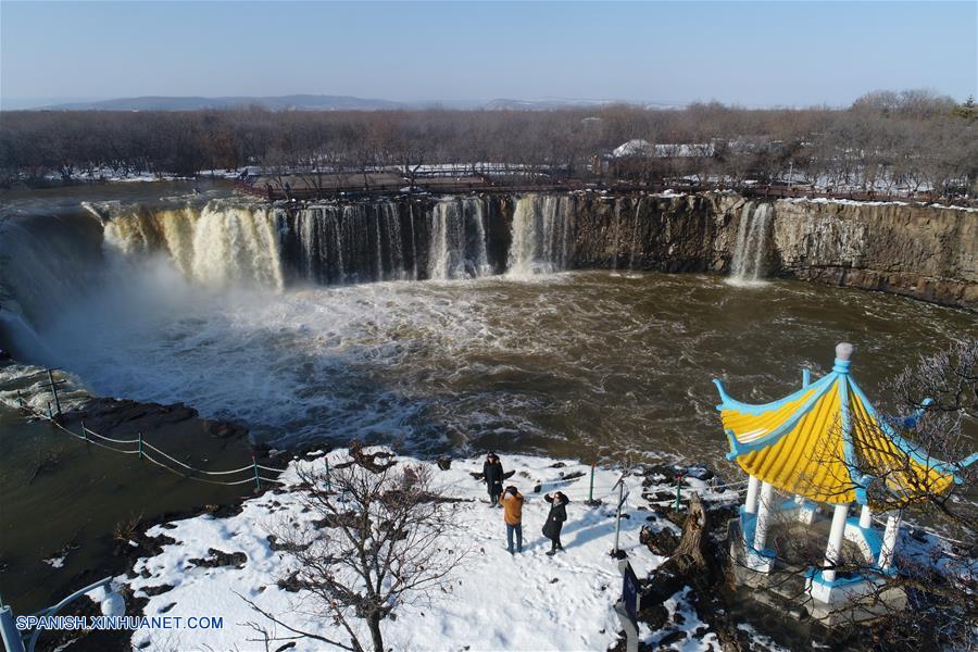 HEILONGJIANG, noviembre 13, 2018 (Xinhua) -- Imagen del 12 de noviembre de 2018 de una vista del paisaje de la Cascada Diaoshuilou, en el Geoparque Global Jingpohu, en Mudanjiang, provincia de Heilongjiang, en el noreste de China. (Xinhua/Zhang Chunxiang)