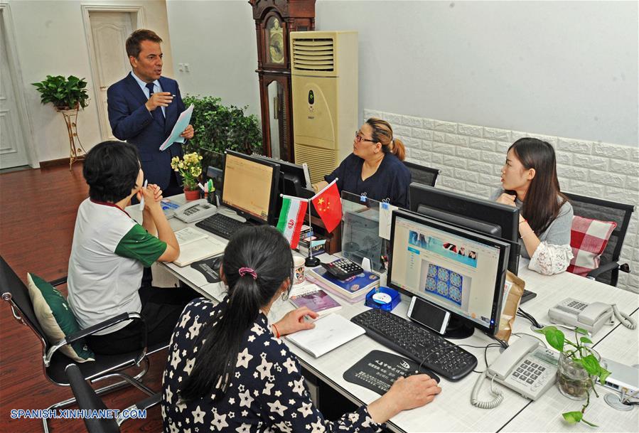 ZHEJIANG, noviembre 13, 2018 (Xinhua) -- Imagen del 8 de mayo de 2017 del comerciante iraní Hamid Dehgh (c) conversando con sus empleados en su compa?ía en Yiwu, en la provincia de Zhejiang, en el este de China. Hace 40 a?os, Yiwu fue un peque?o condado agrícola en la mitad de la provincia de Zhejiang. Desde la reforma y apertura de China, el condado ha aprovechado todas las oportunidades para continuamente desarrollar e innovar su economía. Después de 40 a?os de desarrollo, Yiwu, una ciudad a nivel de condado, ha sido conocida como el mercado mayorista más grande del mundo de materias primas de uso diario. (Xinhua/Tan Jin)