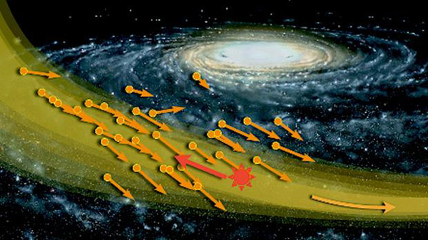 De acuerdo a la investigación, todo nuestro Sistema Solar está a punto de ?hundirse? en los restos de una antigua galaxia, devorada hace mucho por la Vía Láctea. Y sabemos que todas las galaxias están rodeadas de materia oscura. Por ejemplo, cuando el Sol y sus planetas se mueven alrededor de nuestra Vía Láctea, todo nuestro sistema viaja a través del halo de materia oscura a una velocidad de 230 km/s. La materia oscura, por lo tanto, nos aparece como un ?viento? de alta velocidad.
