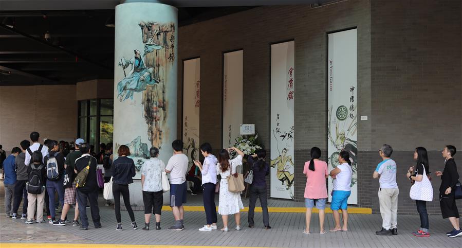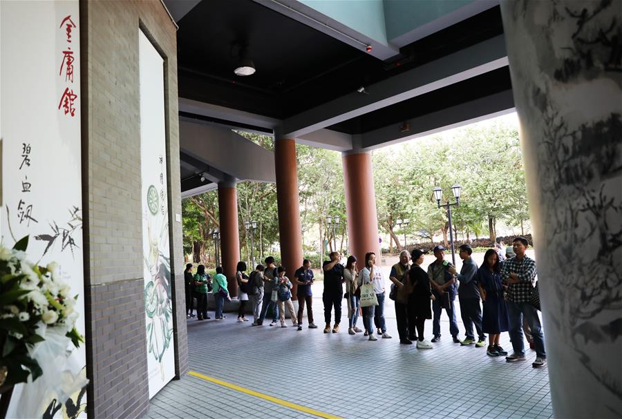 HONG KONG, noviembre 13, 2018 (Xinhua) -- Imagen del 12 de noviembre de 2018 de lectores esperando para ofrecer sus condolencias frente a la Galería Jin Yong del Museo del Patrimonio de Hong Kong, en Hong Kong, en el sur de China. Jin Yong, cuyo nombre real era Louis Cha Leung-yung, es considerado unánimemente como el escritor más importante del género "wuxia" (artes marciales y caballería) del siglo XX. Murió el 30 de octubre a los 94 a?os de edad. Su funeral se llevó a cabo el 12 de noviembre en la Casa de Funerales de Hong Kong. (Xinhua/Wu Xiaochu)