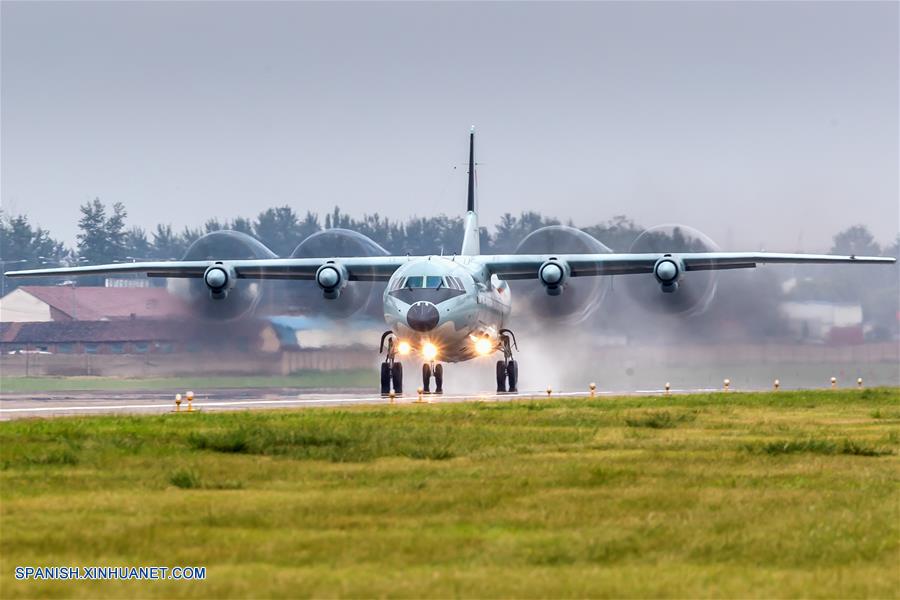 BEIJING, noviembre 14, 2018 (Xinhua) -- Imagen del 9 de julio de 2018 de un avión de transporte Y-9 de la Fuerza Aérea del Ejército Popular de Liberación (EPL) es visto durante un módulo de formación en preparación para los Juegos Internacionales del Ejército. La Fuerza Aérea de China anunció una hoja de ruta para construir una fuerza aérea moderna más fuerte en tres pasos. La construcción de una fuerza aérea moderna más fuerte está acorde con el objetivo general de construir la defensa nacional y las fuerzas armadas, dijo el subcomandante de la Fuerza Aérea china, el teniente general Xu Anxiang, en conferencia de prensa en Zhuhai, en la provincia meridional de Guangdong, sobre la celebración del 69 aniversario del establecimiento de la Fuerza Aérea china llevada a cabo en Zhuhai, provincia de Guangdong, el 11 de noviembre de 2018. (Xinhua/Yang Pan)