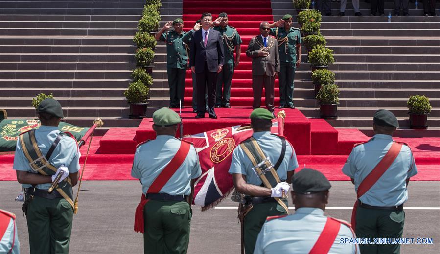 PORT MORESBY, noviembre 16, 2018 (Xinhua) -- El gobernador general de Papúa Nueva Guinea (PNG), Bob Dadae, sostiene una gran ceremonia de bienvenida en honor del presidente chino, Xi Jinping, frente a la casa del Parlamento nacional de PNG previo a su reunión, en Port Moresby, PNG, el 16 de noviembre de 2018. (Xinhua/Fei Maohua)