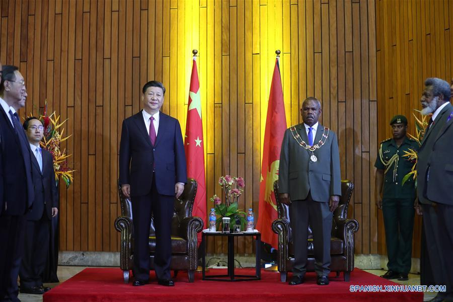 PORT MORESBY, noviembre 16, 2018 (Xinhua) -- El presidente chino, Xi Jinping (c-i), se reúne con el gobernador general de Papúa Nueva Guinea (PNG), Bob Dadae, en Port Moresby, PNG, el 16 de noviembre de 2018. (Xinhua/Ding Lin)