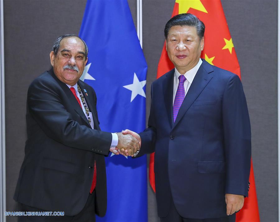 El presidente chino, Xi Jinping (d), se reúne con su homólogo de Indonesia, Joko Widodo, en Port Moresby, Papúa Nueva Guinea, el 17 de noviembre de 2018. (Xinhua/Pang Xinglei)