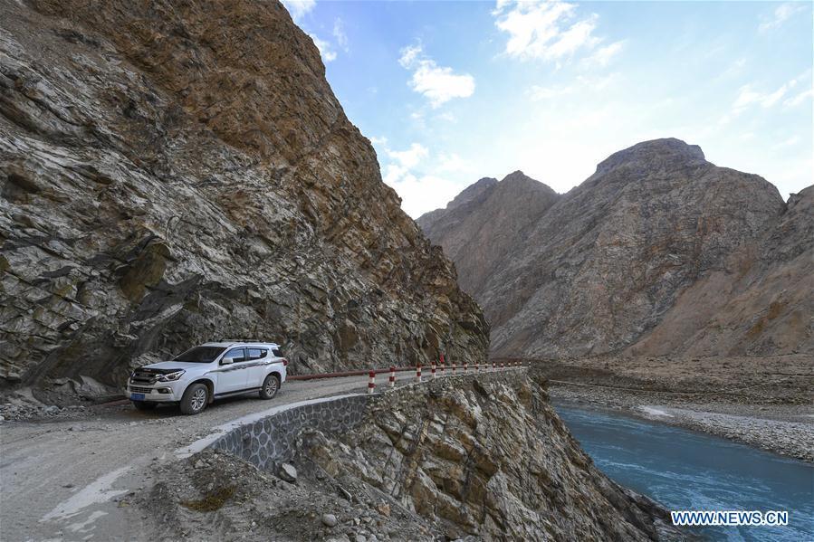 Un vehículo utiliza la carretera de Datong, en Taxkorgan Tayik, Región Autónoma de Xinjiang Uygur. La construcción de infraestructura ha mejoradola conectividad de este municipio, que alguna vez estuvo aislado del mundo. (Foto: Xinhua/ Hu Huhu)