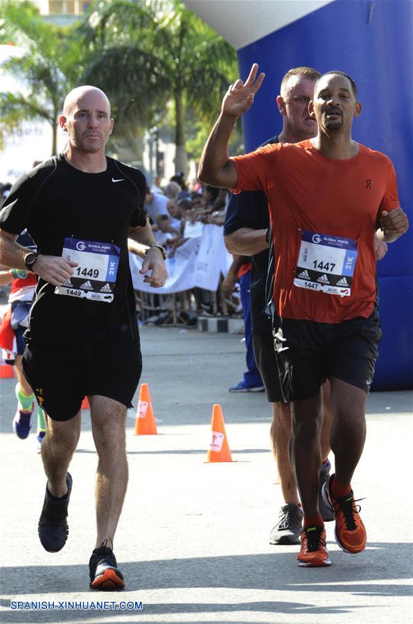 LA HABANA, noviembre 18, 2018 (Xinhua) -- El actor estadounidense Will Smith (d) participa en la carrera Marabana 2018, en La Habana, Cuba, el 18 de noviembre de 2018. Will Smith se convirtió el domingo en el primer actor norteamericano de primer nivel que participa en la carrera anual Marabana, que desde hace 32 a?os reúne a miles de personas, cubanos y extranjeros, e incluye tramos de 10, 21 y 42 kilómetros. Marabana 2018, que se realiza cada tercer domingo de noviembre, contó con la presencia de unos 6,000 corredores, de ellos 1,496 extranjeros, con Estados Unidos como el país más representado, con 278, seguido por México con 90 y Francia con 84. (Xinhua/Joaquín Hernández)