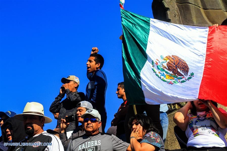 TIJUANA, noviembre 18, 2018 (Xinhua) -- Personas participan en una protesta en contra de la presencia de los migrantes centroamericanos que han llegado en los últimos días a la localidad, en la glorieta Cuauhtémoc, en la avenida Paseo de los Héroes, en Tijuana, en el noroeste de México, el 18 de noviembre de 2018. Alrededor de 300 personas, según el cálculo de policías de Tijuana, se congregaron por la ma?ana del domingo con banderas de México y pancartas para manifestarse en contra del arribo de los migrantes. Los manifestantes basaron su molestia en que la masiva caravana entró de manera irregular a México, además de que Tijuana enfrenta problemas de inseguridad, que creen podrían empeorar durante su estancia y mientras tramitan entrar a Estados Unidos. (Xinhua/Joebeth Terriquez)