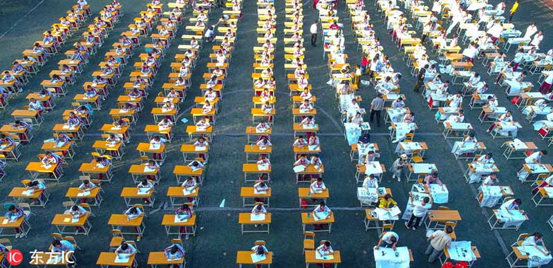 Haikou, Hainan, 19/11/2018 (El Pueblo en Línea) - Lo que parece un mar de oficinistas trabajando al aire libre, en realidad son casi 300 estudiantes y profesores que participan en un concurso de caligrafía celebrado en la escuela secundaria Chengxi en Haikou, provincia de Hainan, 16 de noviembre del 2018. [Foto: IC]
