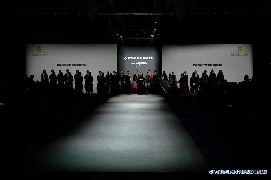 Imagen del 18 de noviembre de 2018 de modelos presentando creaciones dise?adas por Aj Namo, una dise?adora de moda del grupo étnico tibetano, durante un desfile de moda en Lhasa, en la Región Autónoma del Tibet, en el suroeste de China. (Xinhua/Purbu Zhaxi)