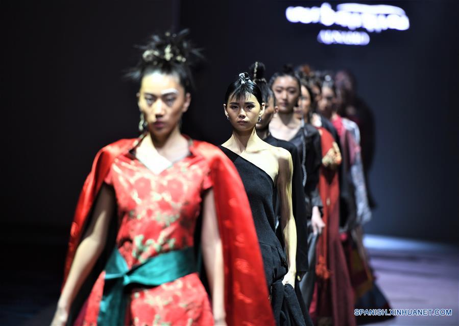 Imagen del 18 de noviembre de 2018 de modelos presentando creaciones dise?adas por Aj Namo, una dise?adora de moda del grupo étnico tibetano, durante un desfile de moda en Lhasa, en la Región Autónoma del Tibet, en el suroeste de China. (Xinhua/Purbu Zhaxi)