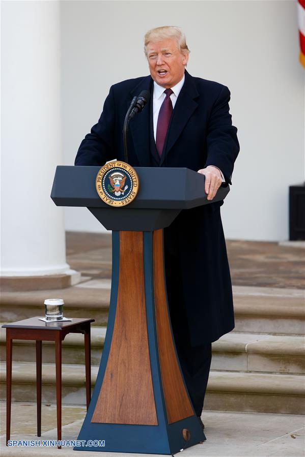 WASHINGTON, D.C., noviembre 20, 2018 (Xinhua) -- El presidente estadounidense, Donald Trump, pronuncia un discurso en la Ceremonia del Perdón del Pavo, en vísperas del Día de Acción de Gracias, en el Jardín de las Rosas de la Casa Blanca, en Washington, D.C., Estados Unidos, el 20 de noviembre de 2018. (Xinhua/Ting Shen)