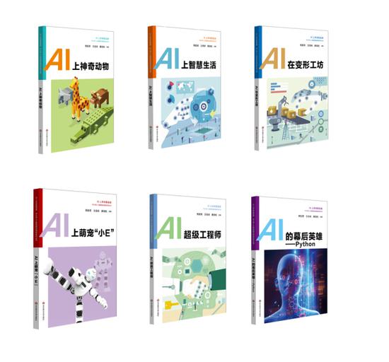Seis libros de la primera serie de diez textos sobre inteligencia artificial, concebidos para estudiantes de primaria y secundaria. Los cuatro libros restantes se publicarán en el 2019. (Foto: Archivo/ Editorial de la Universidad Normal del Este de China)