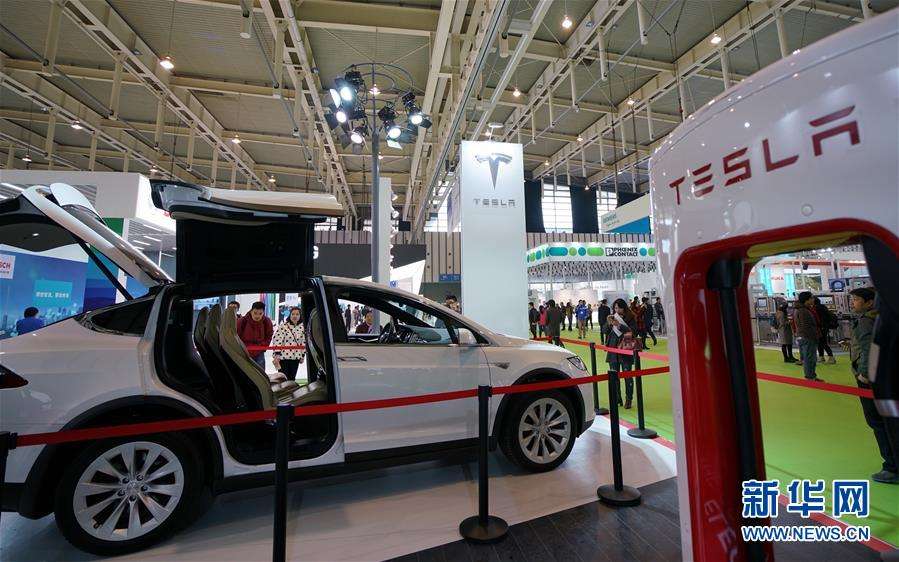 Un coche de energía limpia de Tesla se exhibe en la Cumbre Mundial de Fabricación Inteligente en Nanjing, provincia de Jiangsu, 7 de diciembre del 2016. [Foto: Xinhua]