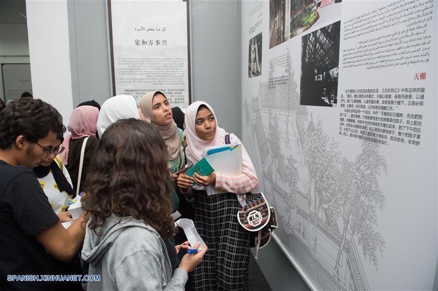 ISMAILIA, noviembre 22, 2018 (Xinhua) -- Imagen del 21 de noviembre de 2018, de estudiantes egipcios visitando una exposición cultural que presenta a Beijing, capital de China, en la Universidad del Canal de Suez, en Ismailía, Egipto. La exposición fue inaugurada el miércoles en el edificio del Instituto Confucio de la Universidad del Canal de Suez. "La exposición está destinada a proporcionar a los visitantes, especialmente estudiantes de idioma chino, información de amplio alcance sobre Beijing", dijo Hassan Ragab, director del Instituto Confucio de la Universidad del Canal de Suez. (Xinhua/Meng Tao)