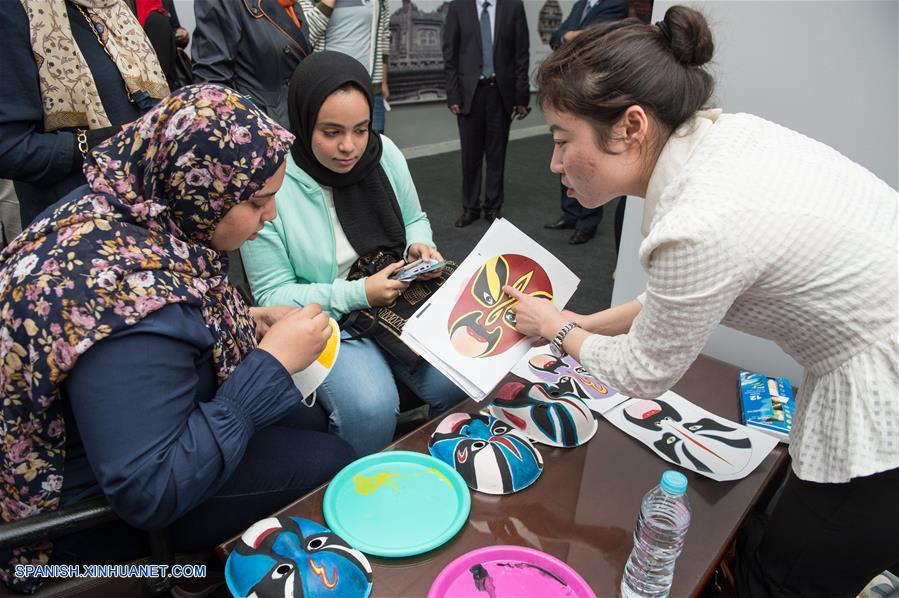 ISMAILIA, noviembre 22, 2018 (Xinhua) -- Imagen del 21 de noviembre de 2018, de estudiantes egipcios aprendiendo a pintar máscaras de la Opera de Pekín durante una exposición cultural que presenta a Beijing, capital de China, en la Universidad del Canal de Suez, en Ismailía, Egipto. La exposición fue inaugurada el miércoles en el edificio del Instituto Confucio de la Universidad del Canal de Suez. "La exposición está destinada a proporcionar a los visitantes, especialmente estudiantes de idioma chino, información de amplio alcance sobre Beijing", dijo Hassan Ragab, director del Instituto Confucio de la Universidad del Canal de Suez. (Xinhua/Meng Tao)