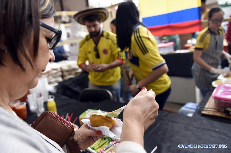 Una mujer condimenta alimentos típicos durante la 9 edición de la Fiesta de las Migraciones, en Montevideo, capital de Uruguay, el 24 de noviembre de 2018. Esta fiesta, que se lleva a cabo del 24 al 25 de noviembre, es el mayor evento de los colectivos migrantes que se realiza en Uruguay, organizada por la Red de Apoyo al Migrante y el Museo de las Migraciones (MUMI), a través del Departamento de Cultura de la Intendencia de Montevideo, y presenta manifestaciones culturales, bailes y espectáculos típicos de los países representados, además de invitar al público a conocer y degustar alimentos y bebidas propias de cada colectivo, de acuerdo con información de la prensa local. (Xinhua/Nicolás Celaya)