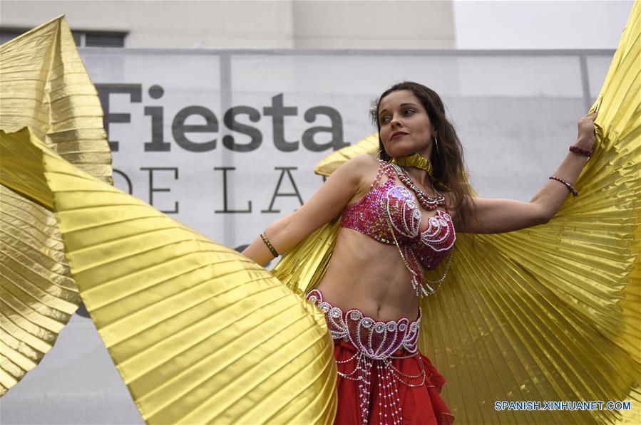 Una participante realiza su presentación de danza durante la 9 edición de la Fiesta de las Migraciones, en Montevideo, capital de Uruguay, el 24 de noviembre de 2018. Esta fiesta, que se lleva a cabo del 24 al 25 de noviembre, es el mayor evento de los colectivos migrantes que se realiza en Uruguay, organizada por la Red de Apoyo al Migrante y el Museo de las Migraciones (MUMI), a través del Departamento de Cultura de la Intendencia de Montevideo, y presenta manifestaciones culturales, bailes y espectáculos típicos de los países representados, además de invitar al público a conocer y degustar alimentos y bebidas propias de cada colectivo, de acuerdo con información de la prensa local. (Xinhua/Nicolás Celaya)