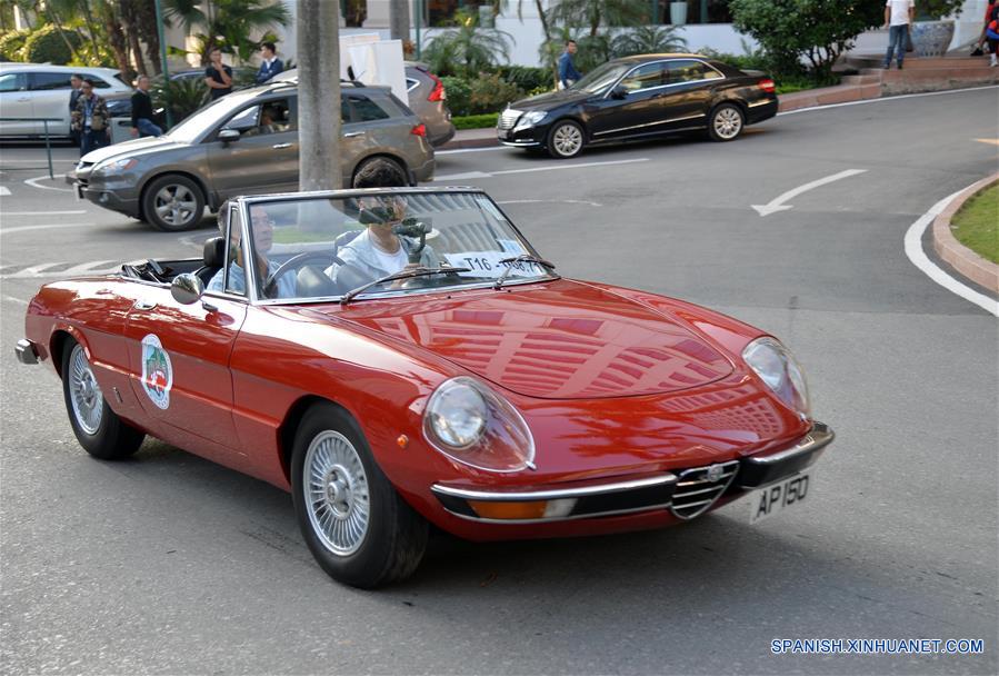 Imagen del 23 de noviembre de 2018 de un automóvil Alfa Romeo Spider 1973 siendo mostrado en una exhibición de automóviles antiguos, en Hanoi, capital de Vietnam. (Xinhua/Ngo Minh Tien)