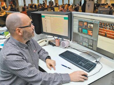 El editor selecciona fotos para la publicación del artículo del presidente Xi Jinping. (Foto: Bai Yang,Diario del Pueblo)