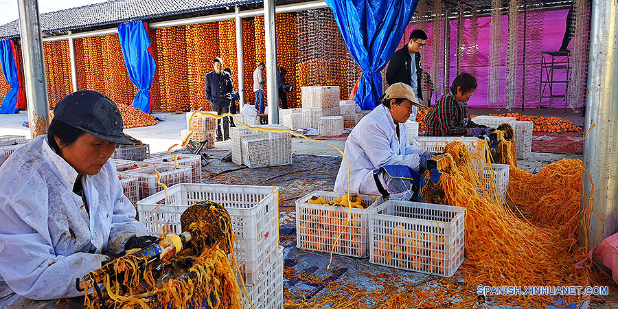 XI′AN, 28 nov (Xinhua) -- El distrito de Fuping de la provincia noroccidental de Shaanxi, una región china donde se producen caquis de calidad, ha reunido esta temporada una buena cosecha.