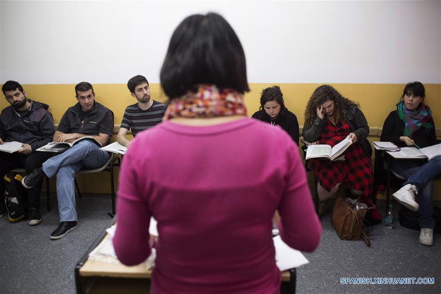 BUENOS AIRES, noviembre 28, 2018 (Xinhua) -- Imagen del 25 de octubre de 2018 de una docente (c), impartiendo una clase de idioma chino a estudiantes argentinos, en el Centro Universitario de Idiomas, en el Instituto Confucio de la Universidad de Buenos Aires (ICUBA), en la ciudad de Buenos Aires, capital de Argentina. China y Argentina, que elevaron en 2014 sus relaciones a nivel de asociación estratégica integral, cuentan con un largo camino de nexos, entre los cuales destaca que hace casi una década se instaló en suelo argentino el Instituto Confucio, una de las sedes más longevas de América Latina. En 2008 se firmó el primer convenio para la instalación del instituto en Argentina, que comenzó a funcionar en 2009 en la Universidad de Buenos Aires, con la colaboración de la Universidad de Jilin de China. Desde su puesta en función, el Instituto Confucio de la Universidad de Buenos Aires (ICUBA) tuvo como objetivo la ense?anza del idioma y la cultura chinos. A casi una década de su fundación, el interés por aprender el idioma chino entre la población argentina, y aún más entre los jóvenes, queda en evidencia con una matrícula actual de 2,000 estudiantes, dijo a Xinhua el director del ICUBA, Patricio Conejero Ortiz. Actualmente, el ICUBA se prepara para celebrar en 2019 un congreso con motivo de los primeros diez a?os del Instituto Confucio en Argentina. (Xinhua/Martín Zabala)