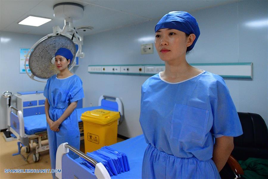 VALPARAISO, noviembre 29, 2018 (Xinhua) -- Personal médico chino posa en un consultorio del buque hospital de China, Arca de la Paz, en el puerto marítimo de Valparaíso, Chile, el 29 de noviembre de 2018. Tradicionales bailes chilenos y chinos dieron el jueves la bienvenida al buque hospital de China, Arca de la Paz, que arribó por primera vez al país sudamericano para conmemorar el bicentenario de la Armada de Chile. El buque dedicado a labores humanitarias y atención médica en casos de crisis y catástrofes, se quedará en el puerto de Valparaíso hasta el 7 de diciembre y estará abierto al público local. (Xinhua/Jorge Villegas)