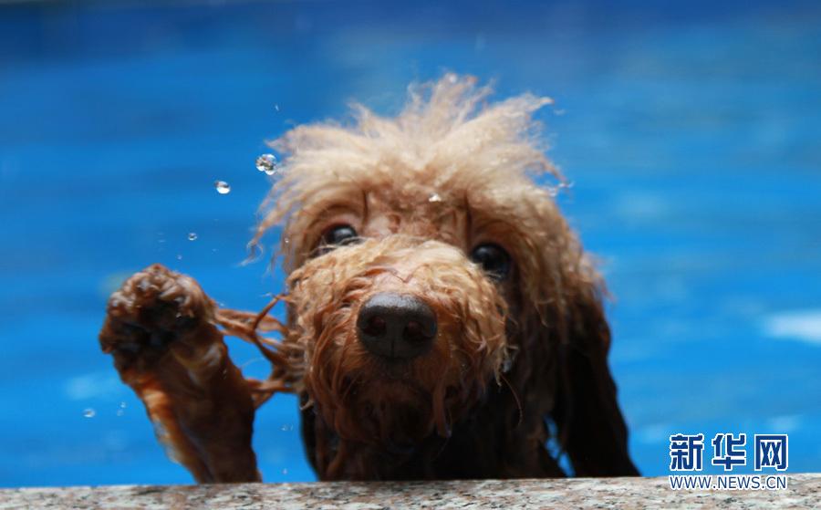 Un perro está nadando en la piscina. (Foto: Xinhua)