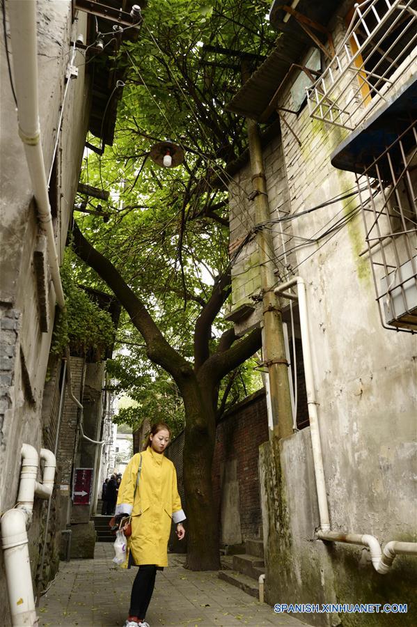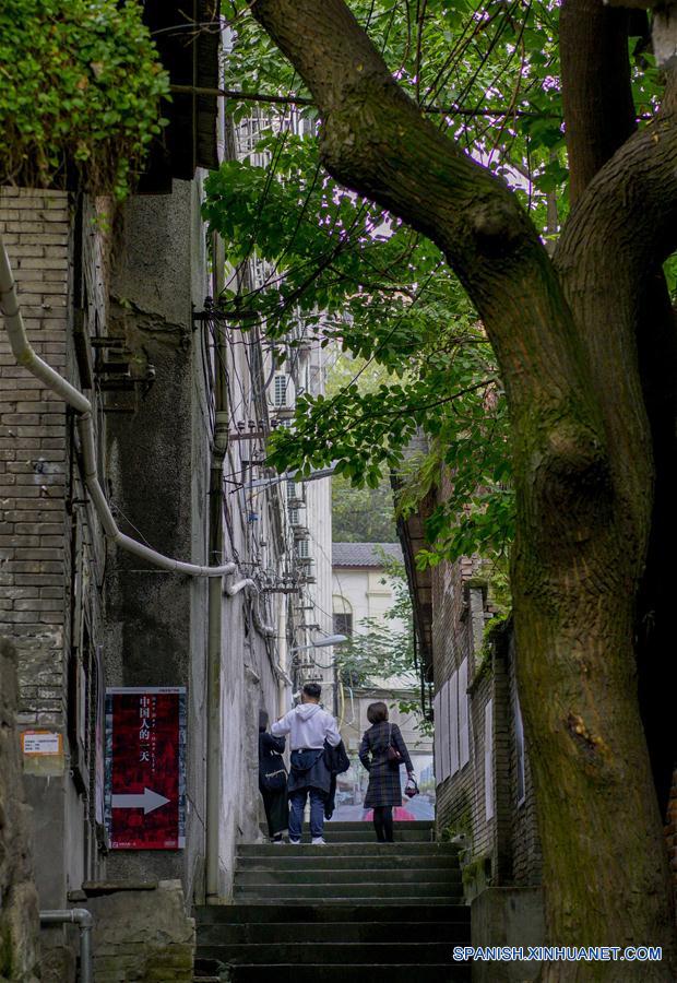 CHONGQING, diciembre 2, 2018 (Xinhua) -- Visitantes posan frente a un edificio antiguo en el tercer sendero en el distrito de Yuzhong de Chongqing, en el suroeste de China, el 2 de diciembre de 2018. Desde 2016, la autoridad local ha llevado a cabo planes para renovar los 14 senderos, con un largo total de 39.5 kilómetros. Los 14 senderos que unen los puntos destacados naturales y culturales de Chongqing ofrecen al visitante las vistas más importantes de la ciudad. (Xinhua/Liu Chan)