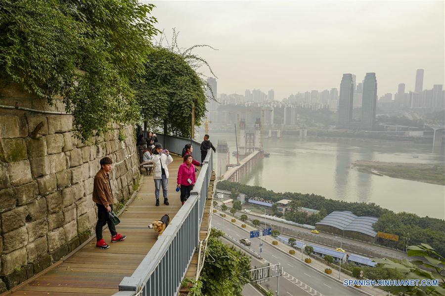 CHONGQING, diciembre 2, 2018 (Xinhua) -- Visitantes caminan en el tercer sendero en el distrito de Yuzhong de Chongqing, en el suroeste de China, el 2 de diciembre de 2018. Desde 2016, la autoridad local ha llevado a cabo planes para renovar los 14 senderos, con un largo total de 39.5 kilómetros. Los 14 senderos que unen los puntos destacados naturales y culturales de Chongqing ofrecen al visitante las vistas más importantes de la ciudad. (Xinhua/Liu Chan)