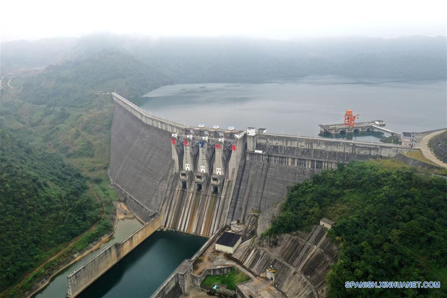 GUANGXI, diciembre 2, 2018 (Xinhua) -- Imagen del 27 de noviembre de 2018, de una vista aérea de la presa multipropósito Baise, en Baise, en la Región Autónoma Zhuang de Guangxi, en el sur de China. Cubriendo un área de alrededor de 36,300 kilómetros cuadrados y con una población de más de 4.1 millones, Baise es una importante base de frutas y vegetales, además de uno de los más importantes productores de aluminio de China. (Xinhua/Zhou Hua)