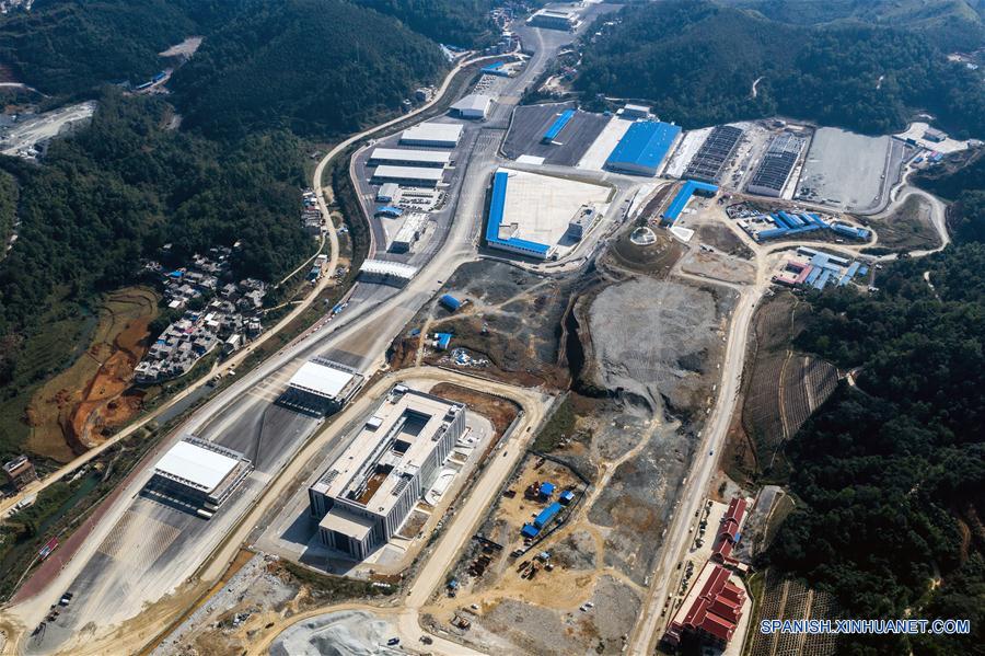 GUANGXI, diciembre 2, 2018 (Xinhua) -- Imagen del 28 de noviembre de 2018, de una vista aérea del puerto de Longbang en la ciudad de Jingxi de Baise, en la Región Autónoma Zhuang de Guangxi, en el sur de China. Cubriendo un área de alrededor de 36,300 kilómetros cuadrados y con una población de más de 4.1 millones, Baise es una importante base de frutas y vegetales, además de uno de los más importantes productores de aluminio de China. (Xinhua/Zhang Shanchen)