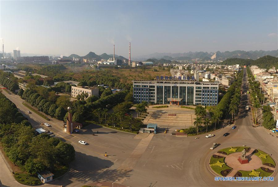 GUANGXI, diciembre 2, 2018 (Xinhua) -- Imagen del 26 de noviembre de 2018, de una vista aérea de una empresa local de aluminio, en el condado de Pingguo de Baise, en la Región Autónoma Zhuang de Guangxi, en el sur de China. Cubriendo un área de alrededor de 36,300 kilómetros cuadrados y con una población de más de 4.1 millones, Baise es una importante base de frutas y vegetales, además de uno de los más importantes productores de aluminio de China. (Xinhua/Lu Boan)